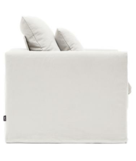 Refined armchair with clean lines, very comfortable and enveloping. With strong wooden structure and foam padding with soft seat and cotton and linen blend fabric covering, completely removable and washable. Includes two cushions. Maximum load 130 kg. Made in Europe with artisanal processes to reduce CO2 emissions for a lower environmental impact. Below you will find all the accessories of the same line to match. All measurements are in the photo of the technical sheet.