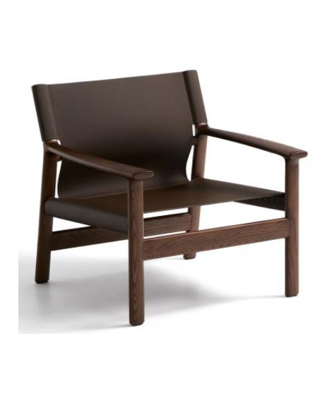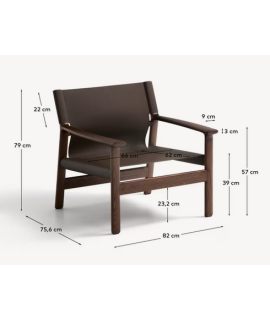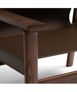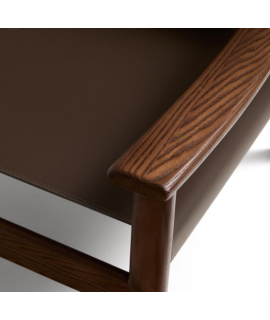 DESTOY armchair in solid ash wood with walnut finish and dark brown natural leather