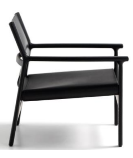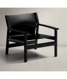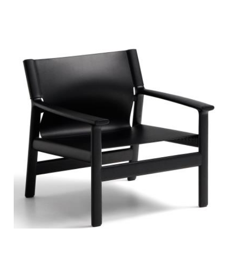 RAMONA armchair in solid ash wood with black finish and natural black leather