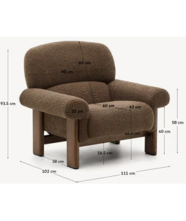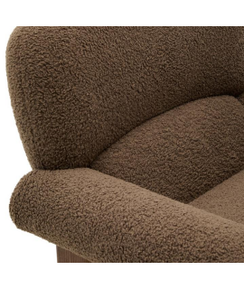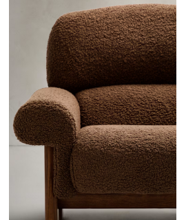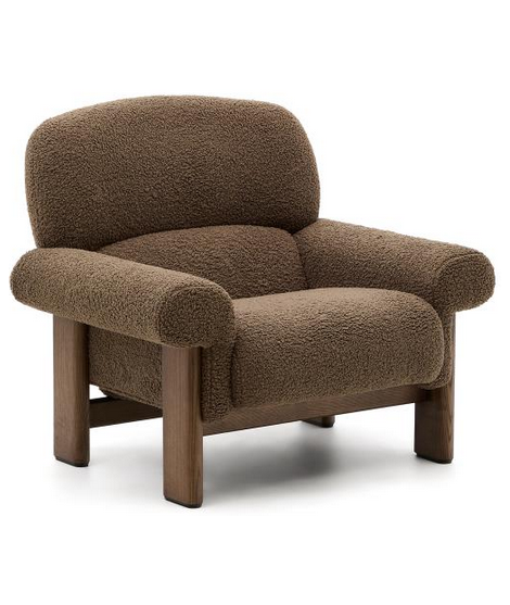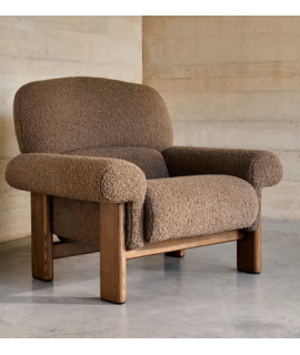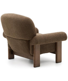 MOMENT armchair in brown bouclé fabric and legs in solid ash wood with walnut finish