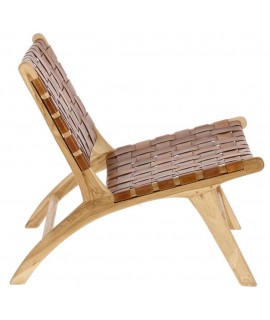 MARIKA vintage armchair in solid wood and strips of brown leather