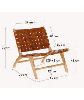 A unique and undisputed charm for this comfortable armchair made with hand-woven brown leather straps and solid wood structure. A true masterpiece, which will add character to your environment. Below you will find all the accessories of the same line to match. All measurements are in the photo of the data sheet.