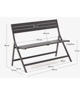 A pleasant folding bench with a fresh and modern line, suitable for the home, garden or terrace, but also bars, ice cream parlors, cafes, restaurants, B&Bs, clubs, hotels, bathing establishments. Made with aluminum structure resistant to rust, corrosion and UV rays. Perfect for outdoors, resistant, practical, foldable and easy to handle.