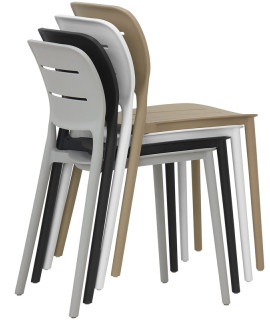 Stackable chair for home or bars, ice cream parlors, cafes, restaurants, waterfront venues, hotels, and beach resorts. Made with a polypropylene frame, available in a variety of colors. Simple and clean lines. Perfect for outdoor use, as it's highly durable, practical, and easy to handle.
