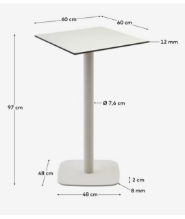 STAND high table 97 cm with 60x60 cm top in white hpl and base in white painted metal for outdoor use