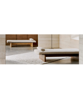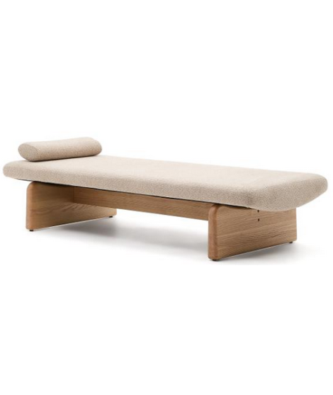 GAIA Chaise longue bed in solid ash and chenille cushions included