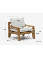 Wonderful armchair made of solid teak wood treated with oil for long life and UV protection, resistant to humidity and microorganisms derived from it, highly resistant and durable in outdoor environments. In fact, teak is a wood that lends itself well to the production of outdoor furniture and shipbuilding due to its resistance to atmospheric agents. The furniture in this line gives a warm and elegant look to your rooms. A touch of sophistication and elegance for your indoor and outdoor conversation environment. Under other complements of the same line. All measurements are in the photo of the technical sheet.