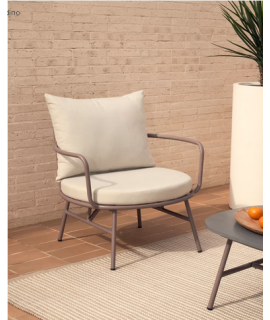 Comfortable and refined armchair, suitable for indoor or outdoor use. Made with painted steel structure and with removable cushions that can be machine washed cold. The rounded and curved steel stands out in all its expression and gives the environment prestige and refinement. Maximum capacity 130 Kg. All the measures are in the photo of the technical sheet.