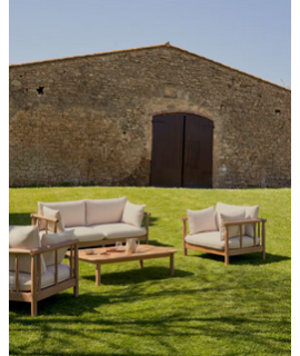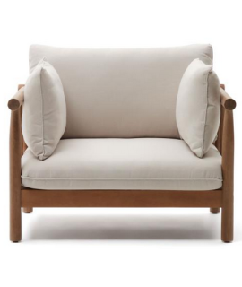 Wonderful armchair made of solid eucalyptus wood. The furniture in this line gives a warm and elegant look to your rooms. A touch of sophistication and elegance for your indoor and outdoor conversation environment. Under other complements of the same line. All measurements are in the photo of the technical sheet.