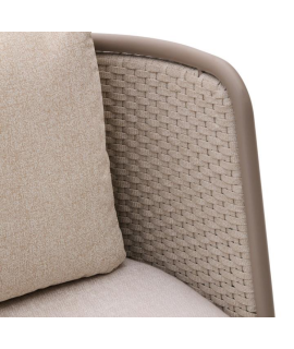 Fascinating armchair with a light dove-grey powder-coated aluminium frame, hand-woven rope and removable cushions in ecru-coloured water-repellent fabric. Solid and resistant to oxidation, rust, corrosion, weather and UV rays. Perfect for home, garden, balcony or terrace. Ideal for your outdoor spaces. Maximum load capacity of 130 kg. All measurements are in the photo of the technical sheet. Below you will find other accessories from the same line.