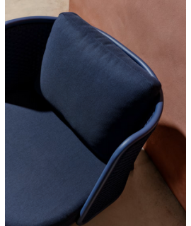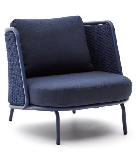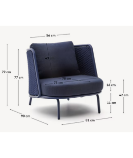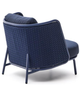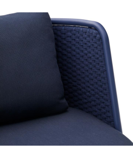 Fascinating armchair with a powder-coated aluminium frame, hand-woven rope and removable cushions in blue water-repellent fabric. Solid and resistant to oxidation, rust, corrosion, weather and UV rays. Perfect for home, garden, balcony or terrace. Ideal for your outdoor spaces. Maximum load capacity of 130 kg. All measurements are in the photo of the technical sheet. Below you will find other accessories from the same line.