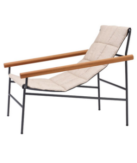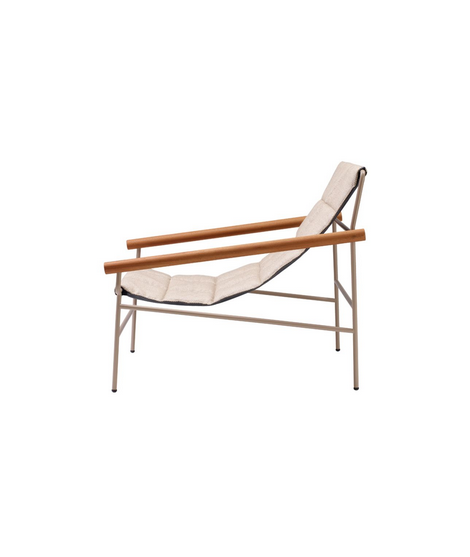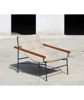 Comfortable armchair, deckchair with wooden armrests, made with a matt painted steel frame, choice of colour, very resistant to bad weather, and breathable and water-repellent fabric cover fabric sheet with quilted squares, choice of colour. Extremely practical for indoors or outdoors, you can take it out in the summer months to stay in the open air and enjoy your garden or terrace in the company of friends. A Mediterranean style, fresh and bold, which combines modernity with tradition. The design and great comfort ensure extreme versatility in placing it wherever you want.