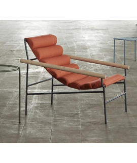 Comfortable armchair, deckchair with wooden natural oak armrests, made with a matt painted steel frame, choice of colour, very resistant to bad weather. Padded and shaped in waves, water-repellent fabric cover choice of colour. Extremely practical for indoors or outdoors, you can take it out in the summer months to stay in the open air and enjoy your garden or terrace in the company of friends. A Mediterranean style, fresh and bold, which combines modernity with tradition. The design and great comfort ensure extreme versatility in placing it wherever you want.
