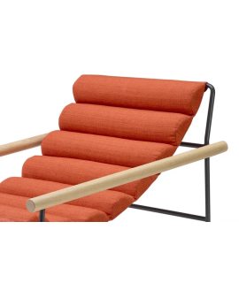 Armchair deckchair with wooden natural oak armrests Ø 40 mm. Padded and shaped in waves, water-repellent fabric cover, choice of color. Frame in matt tubular steel Ø 16 mm, powder coated, choice of color. Highly resistant material, ideal for outdoor use, resistant to rust and corrosion. Resistant to UV rays and bad weather. Suitable for indoor or outdoor use. Below you will find available as an accessory, the matching headrest cushion and the replacement cover. All measurements are in the photo of the technical sheet, scrolling with the arrows.