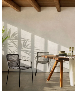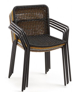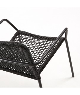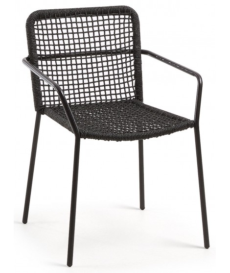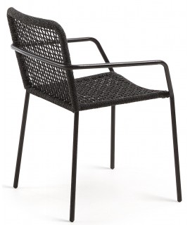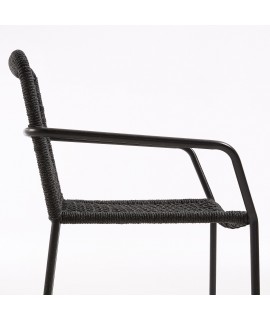 Beautiful chair with armrests, with a black epoxy painted metal structure, seat and back in polyester rope, strong and resistant, with a pleasant weaving. Available in color choice. Suitable for outdoor use. All measurements are in the photo of the data sheet.