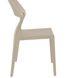 Beautiful chair, design and gritty. Suitable for bars, ice cream parlors, cafes, restaurants, waterfront establishments, hotels, beach resorts. Made with a polypropylene structure. Available in colors: white, anthracite or dove gray. Perfect for outdoors, because it is very durable, practical and easy to handle.