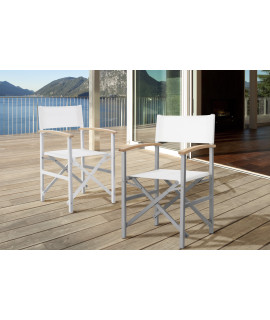 Comfortable and pleasant for your garden and outdoor spaces this fabulous chair with armrests. Made of varnished aluminum, available in colors: gray and white. Seat and back in textile fabric and wooden armrests. To relax and enjoy the relaxation being comfortable on a pleasant session.