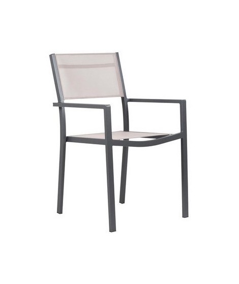 Chair with aluminum structure painted white or anthracite and textilene for seat and backrest, available in the following colors: dove gray, gray or white. Perfect for bars, cafes, residences, restaurants, waterfront establishments, hotels, b & b, beach resorts. Ideal for your outdoor spaces, garden or terraces. Simple and refined. Stackable.