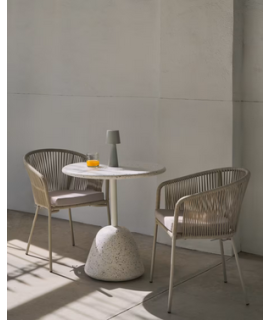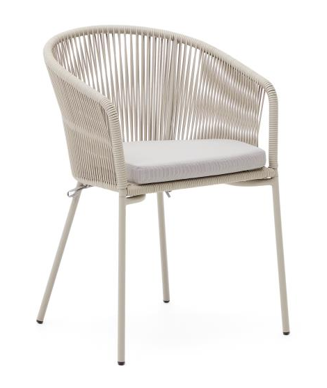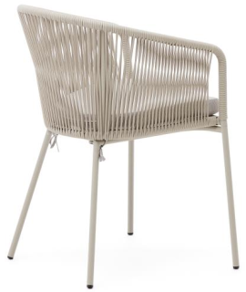 Comfortable chair with armrests in ecru polyester rope, galvanized steel structure very resistant to bad weather and removable and removable seat cushion. Extremely practical for indoors or outdoors, you can take it out in the summer months to be outdoors and enjoy your garden or terrace in the company of friends.