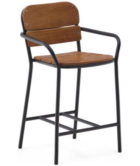 Fascinating footstool with armrests that combines the naturalness of solid eucalyptus wood with the industrial touch of black aluminum. Wonderful for home, garden or terrace, but also for bars, cafes, residences, restaurants, hotels, B&Bs, highly resistant to weather and UV rays. Treated for outdoor use. Maximum load up to 130 kg. Below you will find the matching stool. In the photo of the technical sheet there are all the measurements.