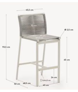 ILGAR footstool h 65 in rope and white aluminum design for outdoor garden or terrace home bar ice cream parlors