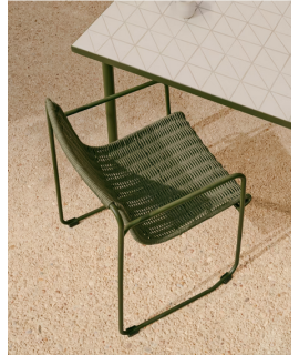 Comfortable chair with armrests in green polyester rope, frame in green galvanized steel very resistant to bad weather. Extremely practical for indoors or outdoors, you can take it out in the summer months to stay outdoors and enjoy your garden or terrace in the company of friends. A Mediterranean style, fresh and bold, which combines modernity with tradition. The sled design and the generous dimensions of the seat ensure a unique experience of comfort. Below you will find the other accessories of the same line.