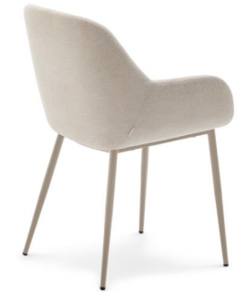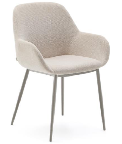 BING chair with armrests in beige chenille effect fabric and beige metal legs