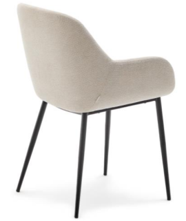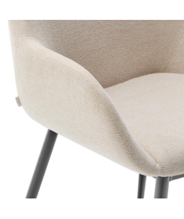 DONDAP chair with armrests in beige chenille effect fabric and black metal legs