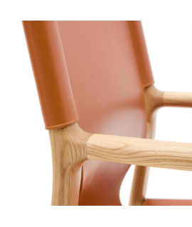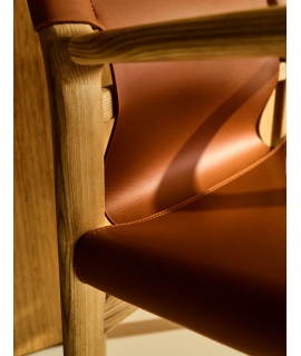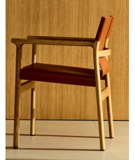 CALISTA chair with armrests in solid natural ash wood and light brown natural leather