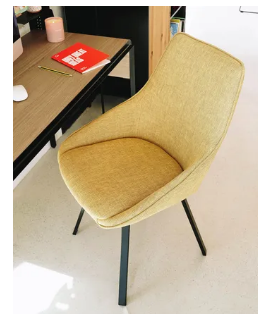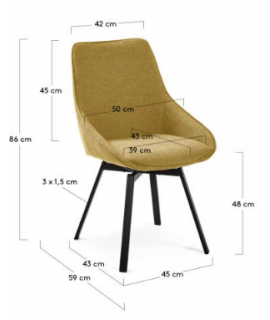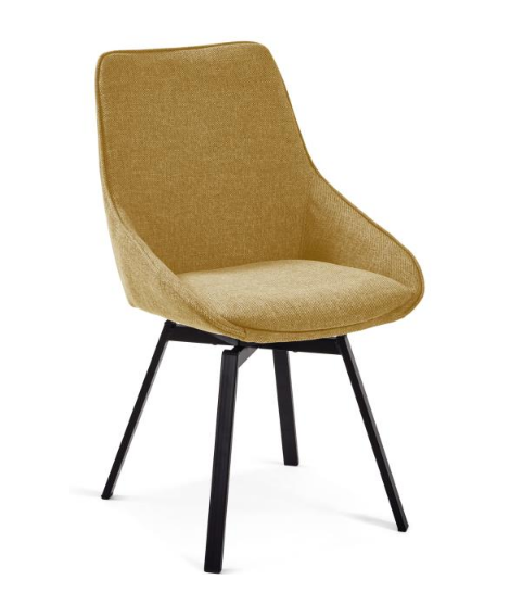 Beautiful and comfortable chair with swivel seat. Made with a supportive and comfortable padding, with a solid wood frame, legs in black painted metal and fabric covering, available in the following colors: mustard, light gray or dark gray, resistant and easy to remove. Suitable for home, dining room, or contract, offices, professional offices, banks or hotels.