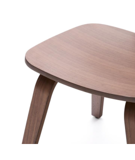 Beautiful and solid chair, with an elegant line and a renewed look. Very refined, with a strong structure in solid rubber wood with walnut or ash veneer, it stands out for both its aesthetics and functionality. Intriguing, with an essential design and a strong character.