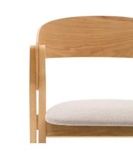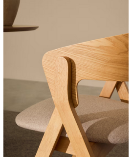 Beautiful and solid chair, with an elegant line and a renewed look. Very refined, made with a strong structure in solid wood with a ash veneer natural finish and a backrest with ash veneer with a ash veneer natural finish, it stands out for both its aesthetics and functionality. Wonderful and comfortable, it has a padded seat covered in beige chenille. Intriguing, with an essential design and a strong character.