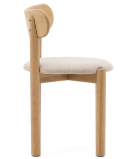 GOREV solid oak chair with natural finish and beige chenille seat