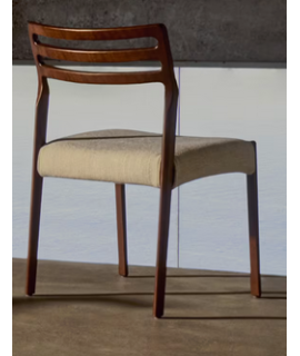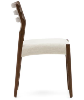 MOE chair with removable cover in beige chenille and solid oak wood walnut finish home design