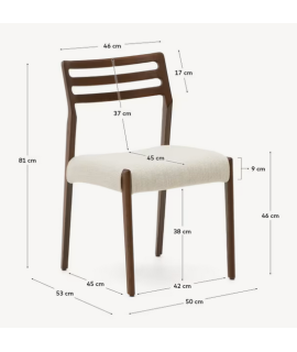 Beautiful chair with a solid oak wood walnut finish and a with a removable cover soft chenille fabric seat. With certification from environmentally safe and responsible production. Wood certified from responsible forest management. A traditional line revisited in a modern key, makes this chair elegant and refined. Suitable for any type of furniture from classic to modern. Maximum load 115 kg. All measurements are in the photo of the technical sheet.