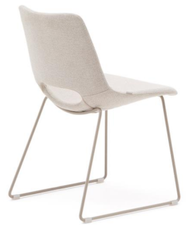 Elegant chair with sled structure with legs in beige painted metal and covering in practical beige water-repellent and stain-resistant fabric, to make a prestigious and unmistakable environment. A clean and high design line contributes with great comfort to give a unique touch, for a refined and comfortable home.