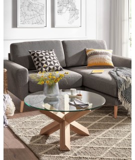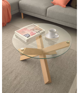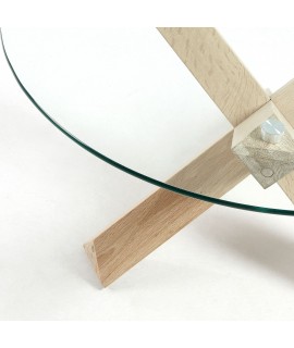 DOMINIK diam 65 coffee table in bleached oak wood and tempered glass top
