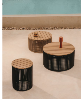 Beautiful coffee table available in two sizes, made of stainless steel, polyester rope and slatted top in solid acacia wood. Wonderful for beautifying your garden or terrace. In the photo of the technical sheet you will find all the measurements. Below you will find other accessories from the same line to match.