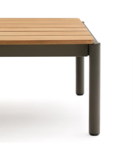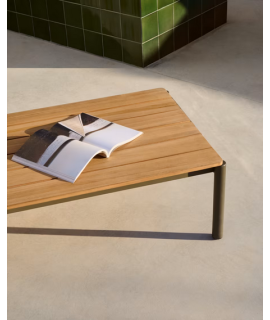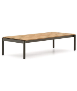 ARIO 150x63 cm green aluminum coffee table with teak wood top for outdoor garden terrace