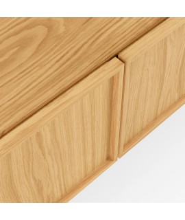 Essential and small sideboard or TV cabinet, but without sacrificing functionality and storage surface. The clean line and the naturalness of the wood enhance a minimal design and a sober and dynamic look. Made of oak wood, with two doors and a pleasant relief frame that outlines it. Strong and robust structure.
