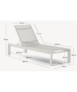 Sun lounger made with a light aluminum frame, highly resistant to rust and corrosion from the elements, and a textilene cover. A beautiful, refined and comfortable sun lounger. In the technical sheet, scrolling with the arrows between the photos, there are all the measurements.