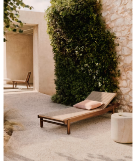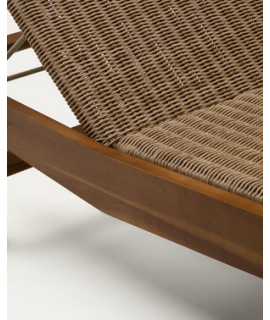 Fascinating and elegant style for this sun lounger with a solid teak wood frame and synthetic rattan with a natural finish, resistant for outdoor use. Comfortable and pleasant. Ideal to combine with other accessories from the same line, to furnish both interiors and exteriors with style. Also suitable for furnishing farmhouses, B&Bs, residences with luxurious style.