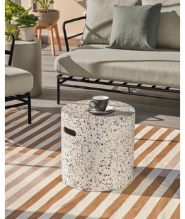 Stool, side table or footrest in polycemento. Practical and very resistant, modern design, suitable for outdoor, garden or terrace. A simple and clean line with great resistance.