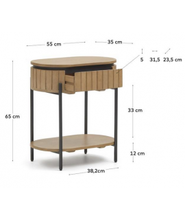 Intriguing and particular bedside table with drawer. Fanciful and refined, gritty and dynamic, which focuses on practicality and an elegant design. In solid mango wood formed by strips combined with a slatted effect and feet in black metal. Below you will find the accessories of the same line to match. All measurements are in the photo of the data sheet.
