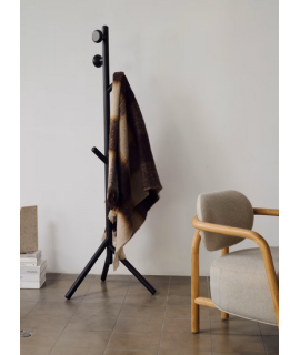 Beautiful and refined solid beech wood floor coat rack black finish. Linear and elegant, it complements any decor, classic or modern, ideal for the home, but also for a professional studio or office.