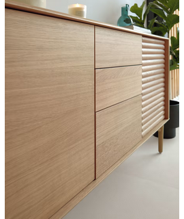 Refined sideboard in solid oak wood, with a timeless, gritty and captivating modern look. A beautiful sideboard, with a very refined line, a careful workmanship done by hand by expert craftsmen, with a refined attention to detail, to embellish and make your environment unique.
