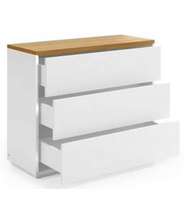 AYAGO chest of drawers 90x36 oak veneer and white lacquered with 3 drawers