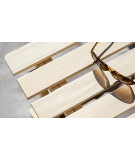 Refined and highly resistant stool for outdoor, garden, terrace or poolside. Handy to take to the beach, made with a strong solid ash wood structure, with a light color that looks good in any environment. Foldable and resealable, it is very versatile. The design that characterizes it is essential and a timeless classic.