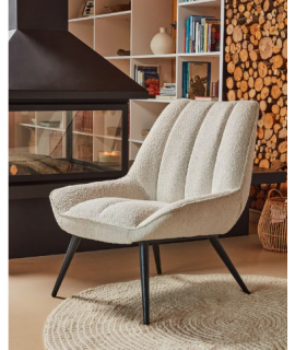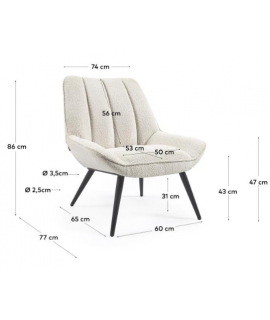 Beautiful and refined armchair, with a trendy design and a discreet style, with elegant and soft upholstery in white shearling fabric and legs in black painted beech wood. Beautiful in any environment, from classic to modern.