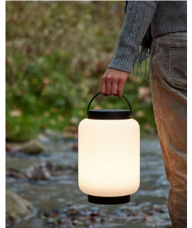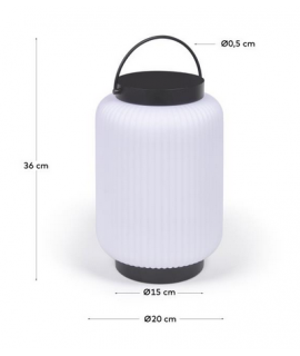 Perfect for a modern or Nordic decor. Bulb included. Made of high quality plastic material also suitable for outdoor use. With 3 light intensities, rechargeable battery and transformer included. All measurements are in the photo of the data sheet.